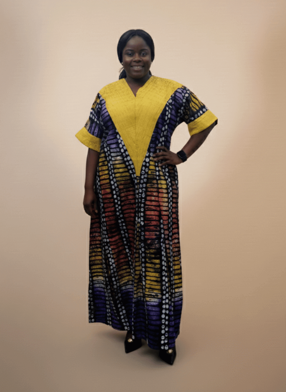 Love this dress! The colours pop beautifully and it’s so comfortable yet elegant. Got so many compliments wearing it!