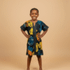 A charming mummy-and-me set with vibrant mustard, teal, and black floral prints. Comfortable yet stylish, these bubus are designed to celebrate heritage while keeping mother and child coordinated.